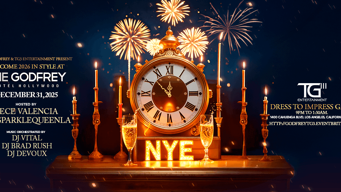 Toast the new year at The Godfrey Hotel Hollywood’s “Dress to Impress” Gala, a high-style New Year’s Eve party in the heart of Los Angeles. Expect an elevated atmosphere, premium sound, and a packed dance floor as we count down to 2026 steps from the Walk of Fame.